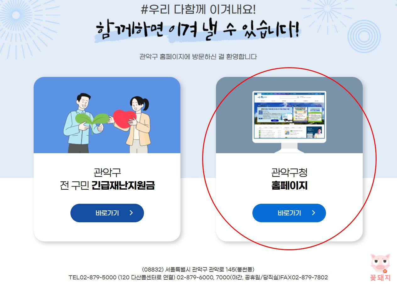 관악구 주민일 경우에는 홈페이지 들어가셔서 빨간 동그라미를 클릭클릭!!!!!!!!!!!